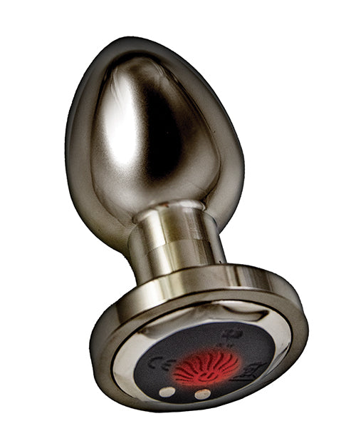 The Nasstoys Ass-Sation Butt Plug is a must have for every booty! Sized perfectly for beginners with a slim tapered shape and flat base with 10 tantilizing vibrating functions which may be controled by pressing the power button on the base of the plug or with the discreet remote control! This metal plug is fun for temperature play and can be heated or cooled by running under hot or cold water. To charge, place the magnetic connecting points on the base of the plug to the prongs on the charger then connect the USB end to a power source. This metal plug is non-porous and easy to clean before and after each use with toy cleaner.