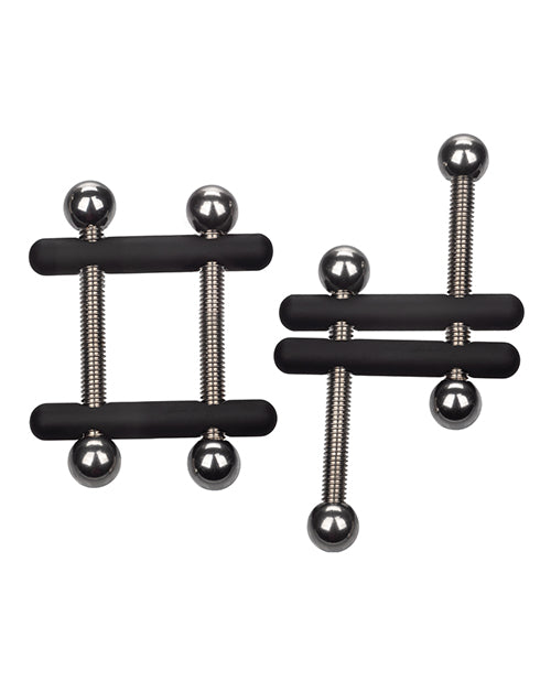 Push sensation to the next level and enjoy teasing nipple play with the Nipple Grips Power Grip Crossbar Nipple Vices. Explore elevated sensation with the 2 fully adjustable multi use clamps with a unique crossbar design. Clamp the naughty clasps to the nipple or anywhere on the body and enjoy every rush of pain and pleasure while the power grip cote holds tight. Each teasing clamp has fully adjustable twin screws sure to intensify and stimulate anywhere it is clamped. As the tension tightens, the tingles intensify with every turn of the screw for the ultimate in nipple stimulation toys. These easy-to-use nipple teasers are great for him, her, or them.