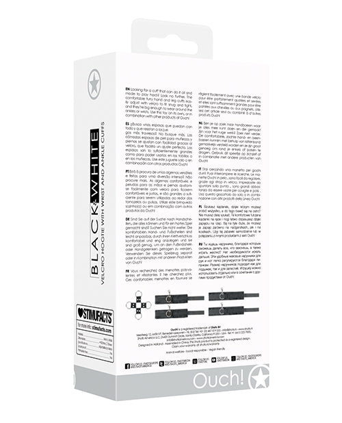Shots Ouch Black & White Velcro Hogtie W-hand & Ankle Cuffs - Black