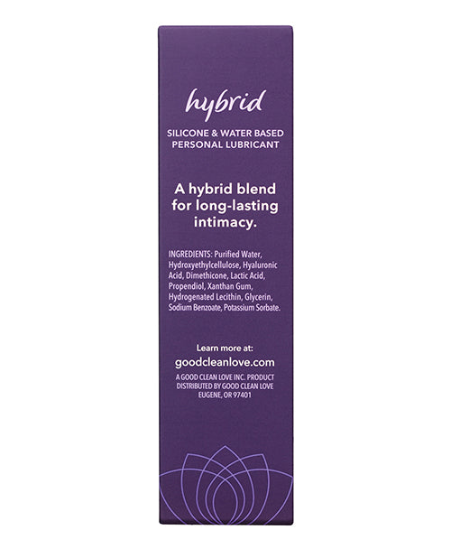 Explore intimacy without boundaries with our longest lasting lubricant yet. Hybrid blends the superior glide of silicone with the benefits of a body-friendly, water-based formula that won't stain and cleans up easily. Enjoy intimacy any way you or your partner prefer with the versatility of a hybrid formula that will stay slippery with or without the presence of natural lubrication. Of course, you expect more than just premium performance from a lube by Good Clean Love. Hybrid is pH-balanced and hypoallergenic, paraben-free with no artificial fragrance. While we don't recommend hybrid for use with silicone toys, other toy materials are fully compatible. Hybrid is safe to use with latex and polyisoprene condoms.
