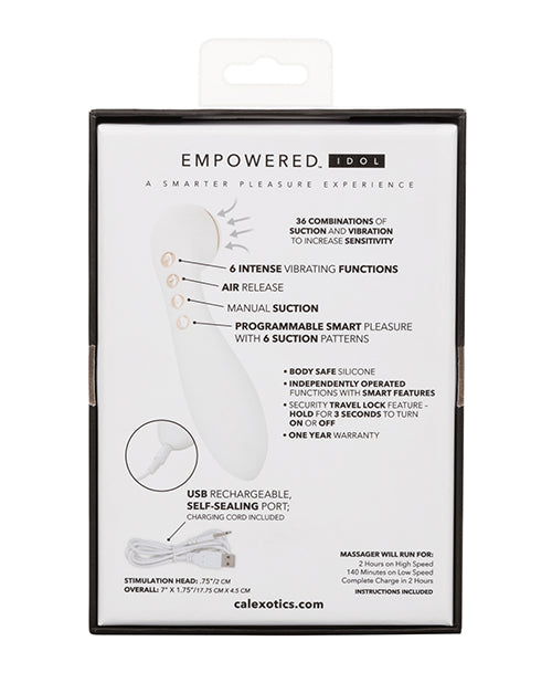 This Idol offers a truly smarter pleasure experience. With a constant suction feature, you can find the exact suction level your body craves. Then explore 6 unique functions using the suction power you set. Want more? Turn on the vibration and experience 6 ways to vibrate, pulsate and escalate your desire.