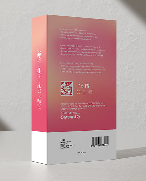 Jubilee - clit licking and g-spot vibrator for blended orgasms. Jubilee is a beautiful top that mimics the fine art of cunnilingus, and is also designed to be a powerful vibrator that can reach, stimulate and caress your G-Spot. A dual stimulation toy for unmatched pleasure inside and out. 9 vibration and licking patterns. Adjustable shaft to fit your body. Waterproof. Silicone. One year warranty.